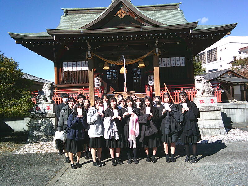 11月28日(金)、恒例の桐生雷電神社への絵馬奉納がが行われました。3年生の有志が、代表して雷電神社に参拝して合格を祈願し、3年生全員でしたためた絵馬を奉納いたしました。