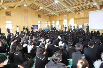 前日の1月16日に激励会が開催され、校長先生をはじめ多くの先生方から激励していただきました。特に3年間、苦楽を共にした三年生の担任の先生方からは、熱い思いを語っていただきました。