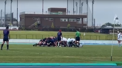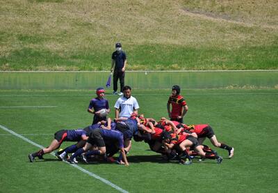 スクラムはフォワード8人同士が組み合い、 そのスクラムの真ん中に投げ込まれたボールを、お互いが押し合って奪います!