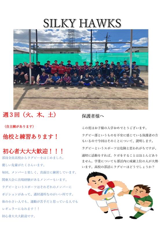 受験お疲れ様でした!!いよいよ、待ちに待った高校生ですね!!「高校に入って何をしたいか分からない!!」、「どの部活に入ろうか迷っている!!」、「たくさん友達を作りたい!!」そう思っている人はぜひラグビー部に来てください!!ラグビー部は部員同士の仲が良く、とてもやりがいのある部活です!少しでもラグビー部に興味がある方は、友達と一緒にぜひラグビー部に来てください!!待ってます!!