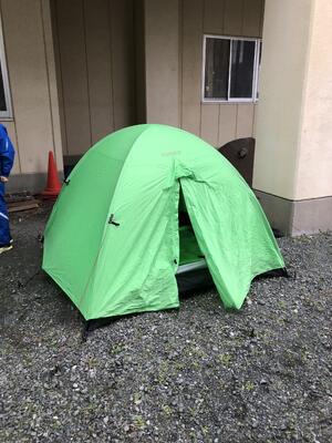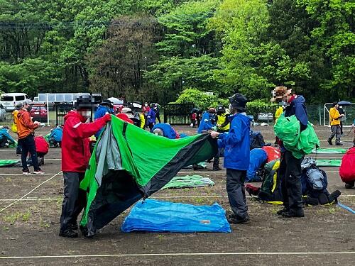 この大会でコロナ禍が始まってから初めての宿泊部門があるため、テント設営の練習を行いました