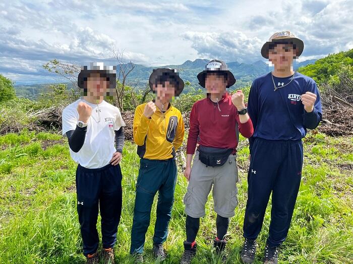 令和5年度最後の山行として、今回は学校で総体に向けた知識・技術の合宿と幕営を行い、次の日に総体出場選手は約20キロの荷物を背負い、鳴神山から吾妻山までの縦走を行いました。