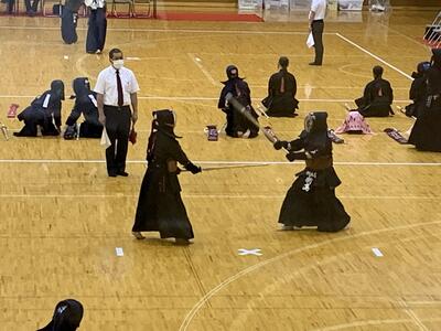 夏休み中思うように練習試合ができず、経験を積めないままの大会参加となりました。女子は団体戦で規定より少ない4名での参加でしたが、1月に行われる県新人兼選抜予選大会のシード権を獲得しました。個人戦でもベスト16に2名入りましたが、もう少し緻密な剣道ができれば更に上を目指せるのではないかという、課題の残る結果に終わりました。男子は初めて大会に参加する生徒がおり、経験不足が浮き彫りになってしましましたが、夏休みの稽古の成果も感じられる場面もありました。これから稽古を重ね、11月の学年別大会、1月の新人戦では更に好結果を出すことを目指していきたいと思います。大会開催に関わった皆様に、厚く御礼申し上げます。ありがとうございました。