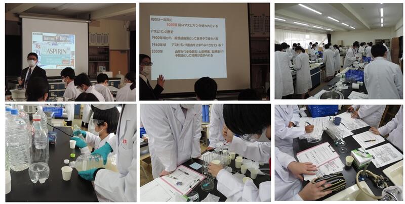 群馬大学共同教育学部から日置英彰教授とTA3名をお招きして「くすりの化学」というテーマで実験実習講座を2時間、群馬大学理工学府から石間経章教授とTA7名をお招きして「空気流動の可視化と簡易的計測」というテーマで実験実習講座を2時間の合計2講座を実施していただきました。