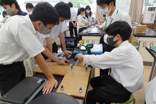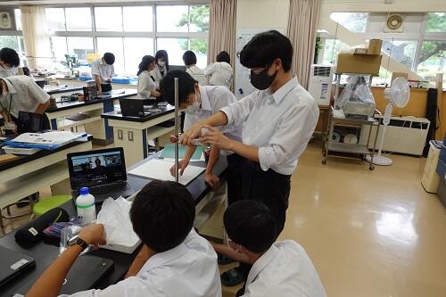 高校に入学して本格的な実験・実習は初めてだったため、全員が積極的に参加し、協力し合いながら実験実習に臨めていました。自分の将来の専門科目を決める上で、貴重な経験ができたはずです。