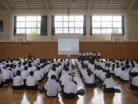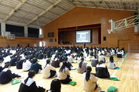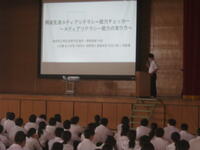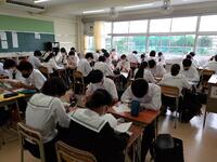今後の探究活動に向けて参考になる話がたくさんあり、とても暑い日でしたが、生徒達が熱心にメモをとる姿が見受けられました。オンラインではなく対面で行えたことで、生徒に直接伝わり、刺激があったのだと思います。大森学長、ありがとうございました。