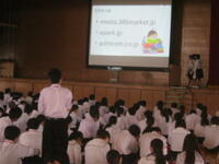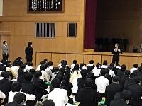 緊急事態宣言中のため、半分の生徒は各HRで視聴し、半分の生徒は自宅でオンラインで講義を受けました。