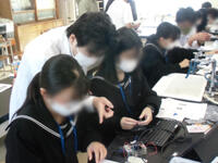 今年度第4回目となる、1年理数科対象のプログラミング講座の様子です。前回に引き続き、アナログ信号をデジタル信号に変換して処理することに取り組みました。