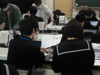 群馬大学大学院理工学府より、山田功先生とTA5名をお招きして「プログラミングと動作制御」をテーマに3時間連続の実験実習講座を受けました。2人1班で協力し合いながら「レゴ マインドストーム」を組み立てた後、各自のChromebookを用いて3種類の難易度の異なるコースに対してレゴブロックを正しく動かすというミッションにチャレンジしました。みな悪戦苦闘しながら真剣に取り組んでいました。3時間があっという間に過ぎてしまいました。