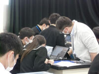 生徒たちは4、5人程度のグループに別れ、言葉だけで相手に情報を伝える課題やプレゼンテーションを行う課題に取り組みました。自宅の生徒も班ごとにオンライン会議に参加し、発表や討議を行いました。実際にプレゼンテーションを体験することで、発表の形式や意義・方法を理解するとともに、相手に伝えることの大切さ・大変さを学ぶことができました。