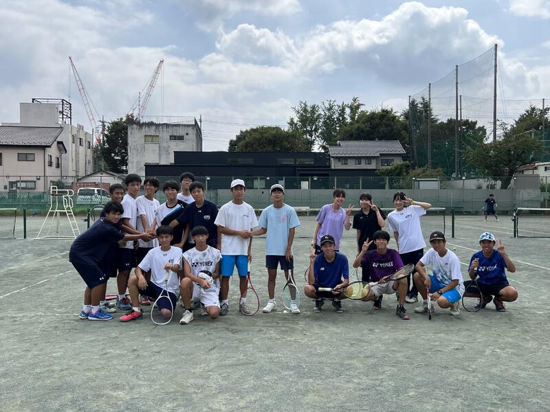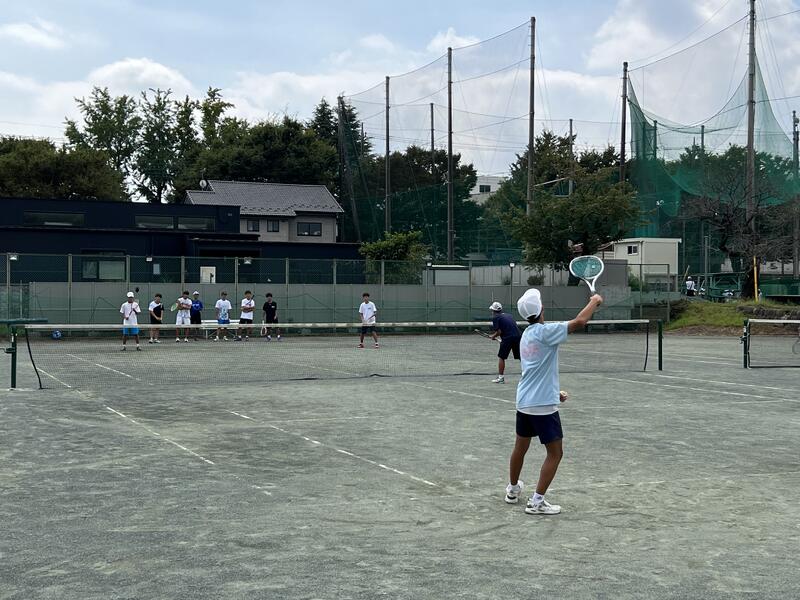 部員と一緒に、ストローク練習や試合形式の練習を行いました。