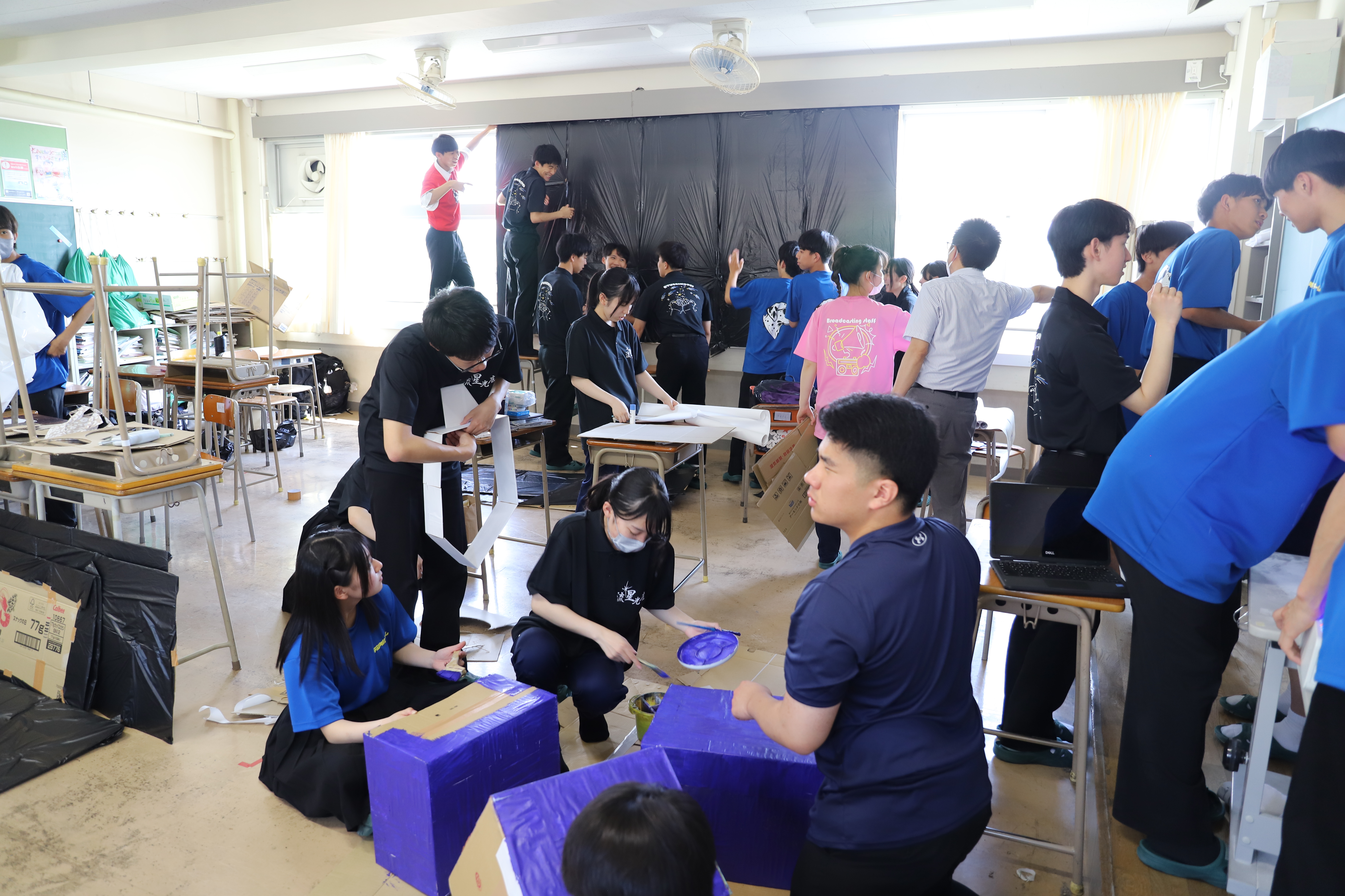 クラス企画では、クラスメート全員が団結しながら準備を進めていました。