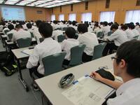 1学年の生徒を対象に、共愛学園前橋国際大学の 大森 昭生 学長から『答えがないから面白い ~研究プロセスの実際と学びの技法~』の講義を受けました。探究を進めていくにあたって何が必要か、どう考えていくかなど、それぞれのポイントを教えていただきました。