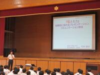 2学年生徒全員を対象に、群馬大学理工学部 弓仲 康史先生から講義「伝える力」~効果的に伝わるプレゼンテーション、コミュニケーション技法~を受けました。探究活動のポスター発表やパワーポイントでの発表の仕方について教えていただきました。