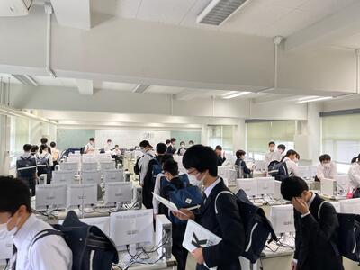 学校公開では、多くの中学生がコンピューター研究部の見学に来てくれました!当日は、部のパンフレット配布や、創作ゲーム体験を行いました。