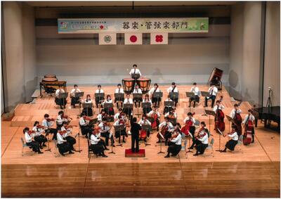 2022年8月3日(水)東京文化会館にて開催された全国高等学校総合文化祭 器楽・管弦楽部門に出場しました。ベートーヴェン作曲の交響曲第7番より第4楽章を演奏しました。壮絶なエネルギーを必要とするこの曲を、全員の力を結集して演奏し、好評を戴くことができました。ご支援・ご協力戴いた方々に深く感謝申しあげます。