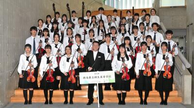 | 年間スケジュール | 4月 始業式・入学式、対面式、部紹介、高校総体壮行会 5月 定期演奏会、桐生市文化祭市民音楽会 6月 文化祭 7月 同窓会総会、硬式野球部応援 8月 全国高校総合文化祭出場 9月・10月 地域での演奏会参加など 11月 群馬県高校総文祭器楽管弦楽専門部大会、桐生市秋季音楽祭 12月 全国高校選抜オーケストラフェスタ出場 1月・2月 地域での演奏会参加など 3月 卒業式、春季合宿 |