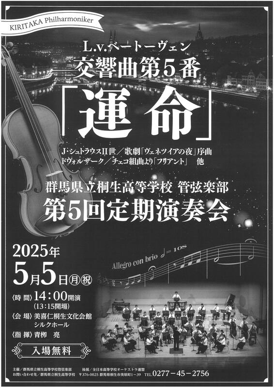 2025年5月5日(月・祝)美喜仁桐生文化会館シルクホールにて、第5回定期演奏会を開催いたします。