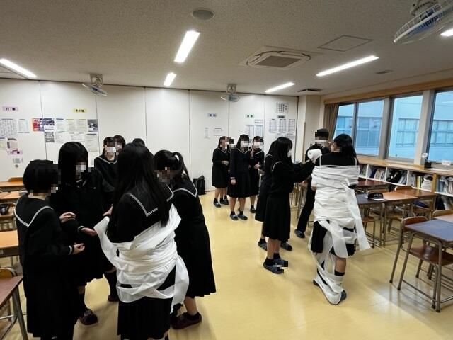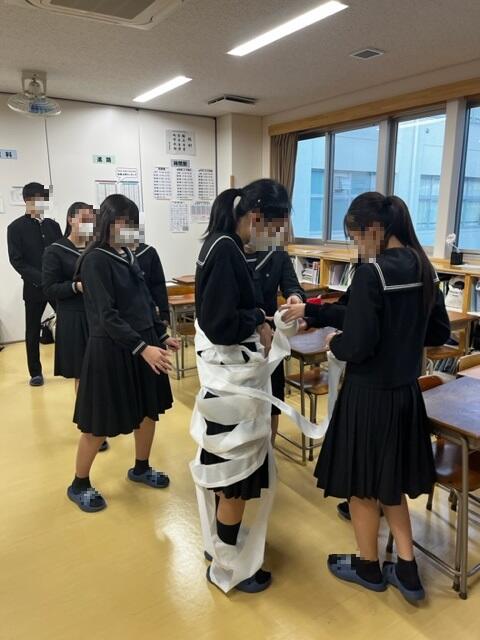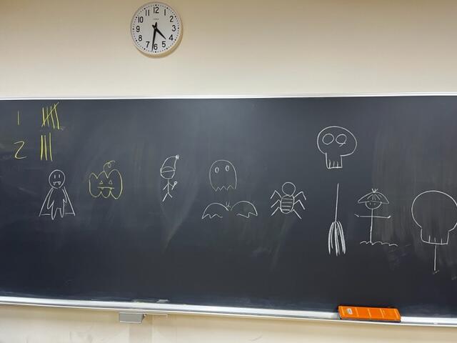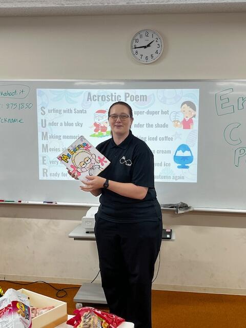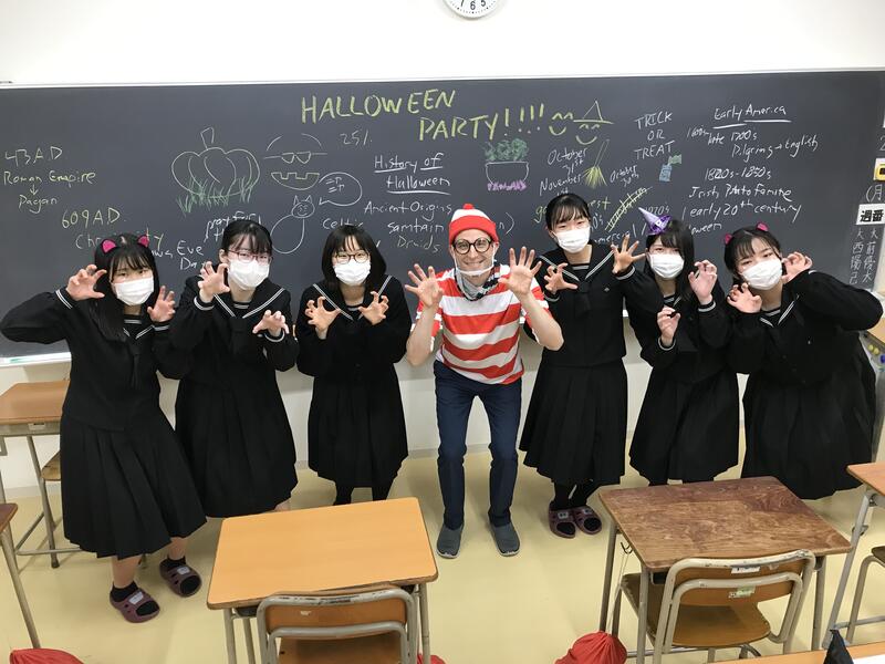We also had a Halloween party this year, where our ALT Lauren-sensei created fun games for the students to enjoy. One of the games we played was called "Werewolf," where the students had to guess who was the werewolf in the group.